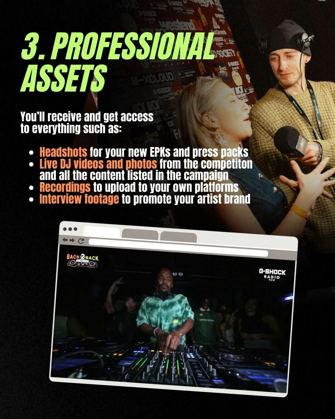 Live DJ videos and photos from the competiton and all the content listed in the campaign