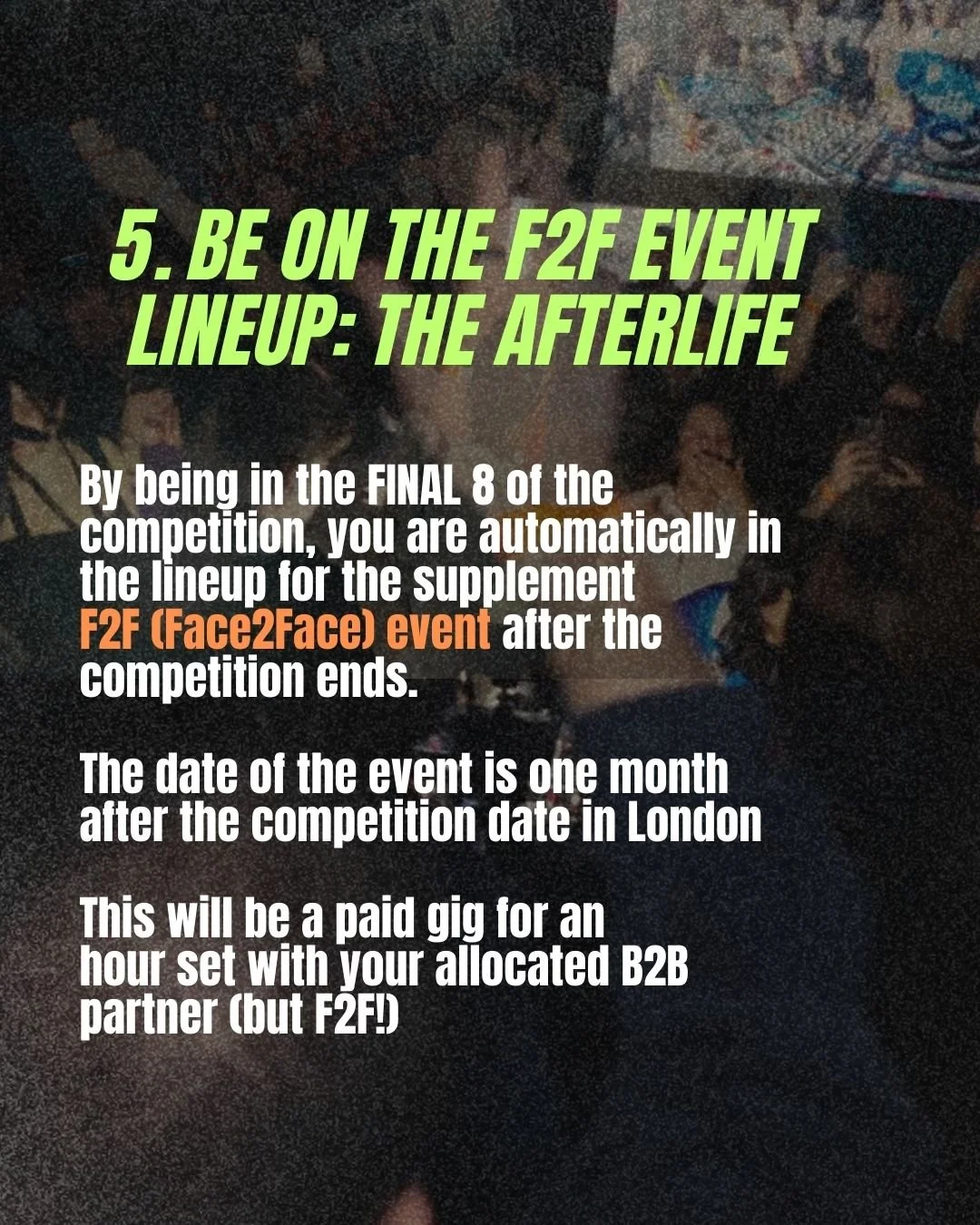 By being in the FINAL 8 of the competition, you are automatically in the lineup for the supplement F2F (Face2Face) event after the competition ends.